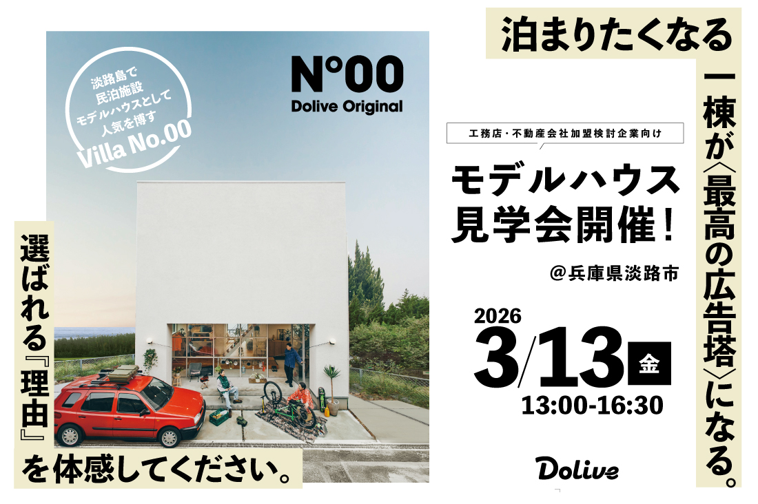 スタンダードハウス既存の躯体をベースに、デザインを乗せる。Doliveオリジナルのデザイン住宅「No.00(ナンバーゼロ)。規格商品としてはもちろん、シンプルでプレーンなこの家をベースに様々なデザインも提案しやすい。